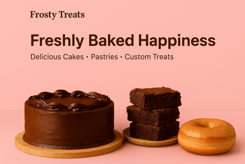 Welcome to Frosty Treats Bakery, where every bite tells a story of freshness, sweetness, and love. From creamy cakes to crispy pastries, we bake with the finest ingredients to make your celebrations extra special. Whether it’s a birthday, wedding, or just a sweet craving, we’ve got something delightful waiting for you.